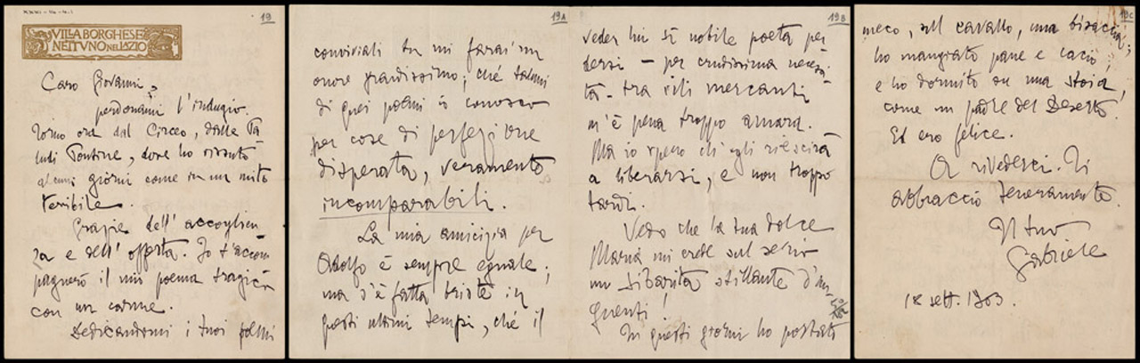 Maria Pascoli, sopravvissuta a Giovanni per oltre un quarantennio, rimasta sola nella casa di Castelvecchio, si fece carico di salvaguardare e celebrare la figura e l’opera poetica del fratello. A tal fine fondamentali erano le carte lasciate dal poeta, che Maria conservò amorosamente, sovente intervenendo sul loro ordinamento (come dimostrato dalle fascette di condizionamento da lei realizzate). …